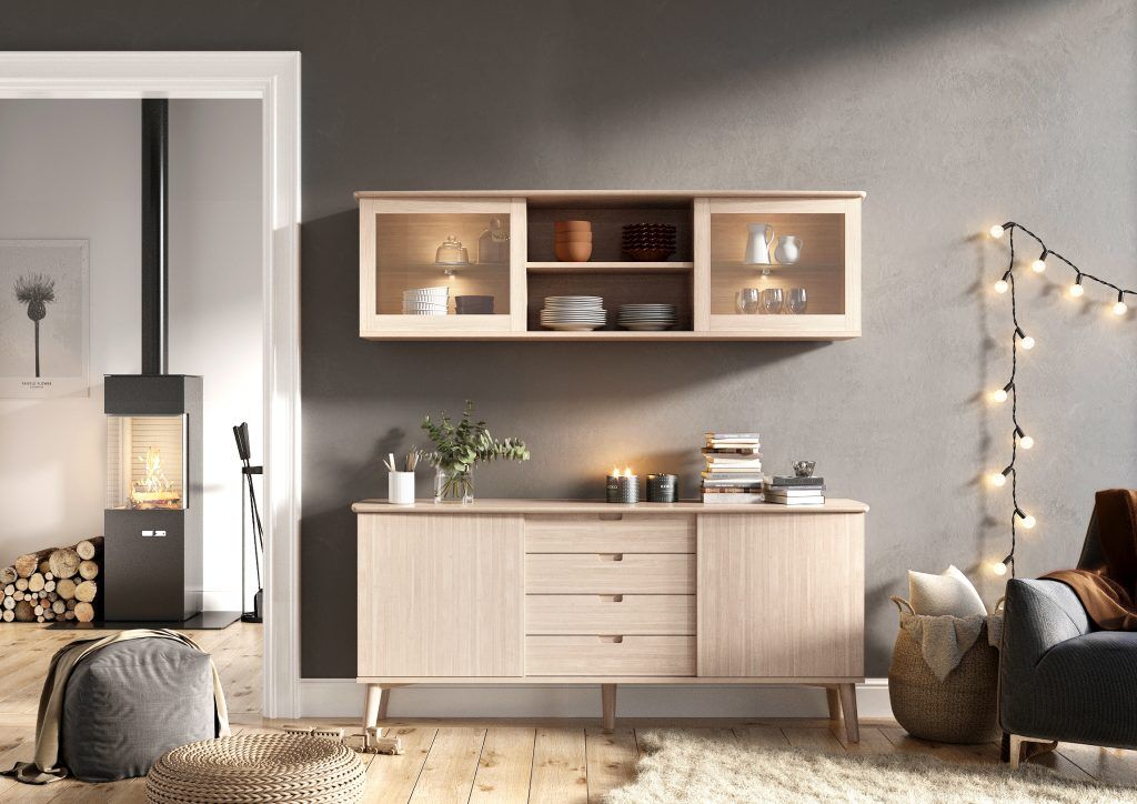 Moderne skjenk i serien CASØ 120, som er preget av sin lette design inspirert av retrostilen på 1950-tallet. De lett avrundede hjørnene og elegante skyvedørene gjør at denne skjenken passer perfekt i alle moderne hjem. CASØ 120 Skjenk er laget med 4 skuffer med soft-close, 2 skyvedører og 1 justerbar hylle bak hver dør. Skjenken er beregnet for oppheng, men det er også mulig å kjøpe matchende ben.